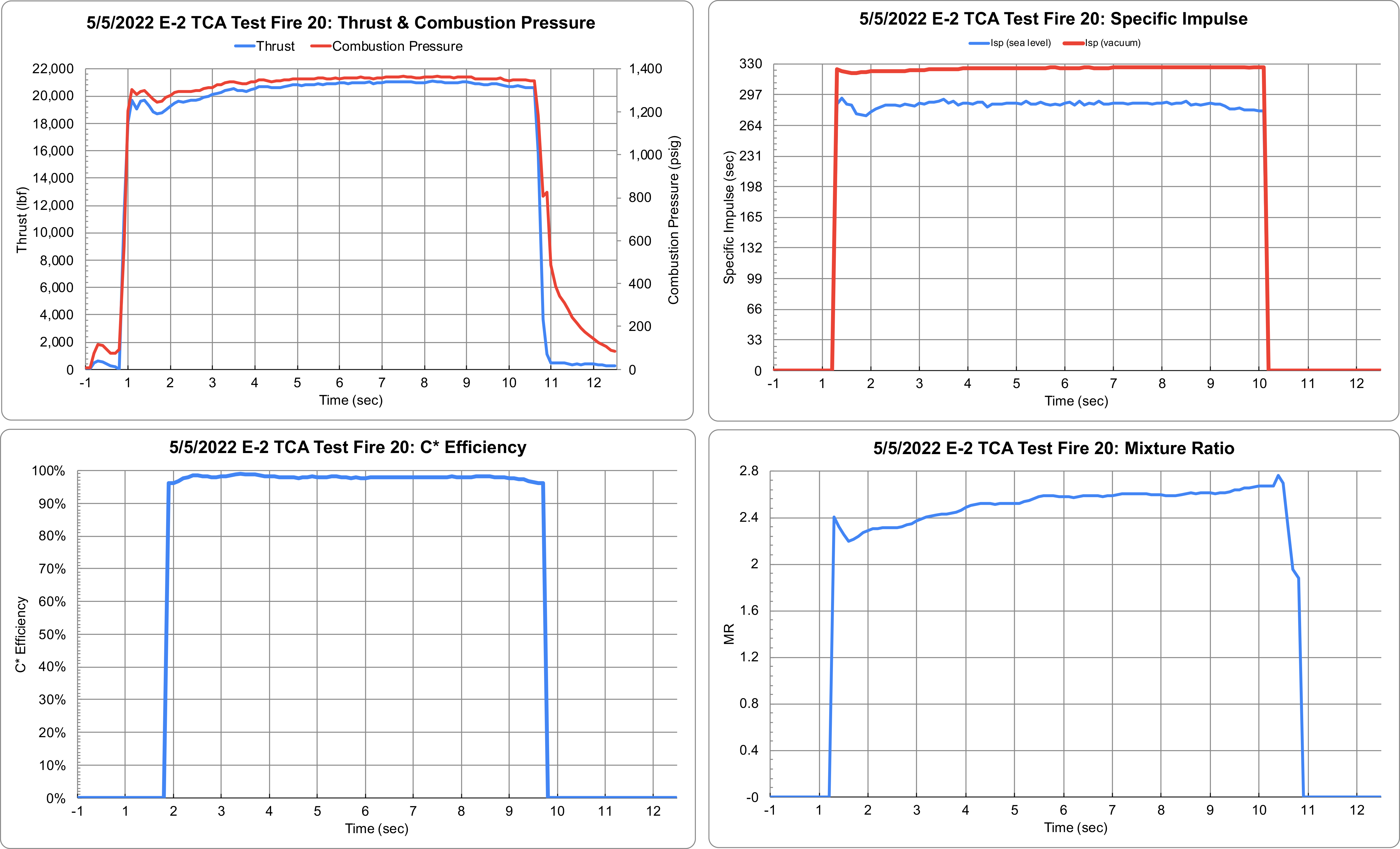 In its successful test-fire campaign, Launcher also demonstrated the E-2 engine with Jet-A aviation kerosene and rocket grade kerosene (RP-1). We proved full functionality and similar performance using the lower cost, easier-to-source aviation Jet-A fuel. Demonstrating Jet-A fuel compatibility meets an important goal of the U.S. Space Force’s responsive launch strategy requirements.